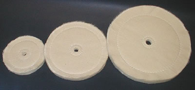 Spiral sewn wheels are the workhorse of most buffing and polishing jobs. Because the plies of cotton cloth are sewn together spirally, the wheel becomes much harder and more pressure can be exerted on it. This is especially useful when ‘cutting’ the metal. The faces of these |