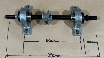 2" diam V pulley (for 1/2 belts) & hex nuts with flanged washers for shaft ends.